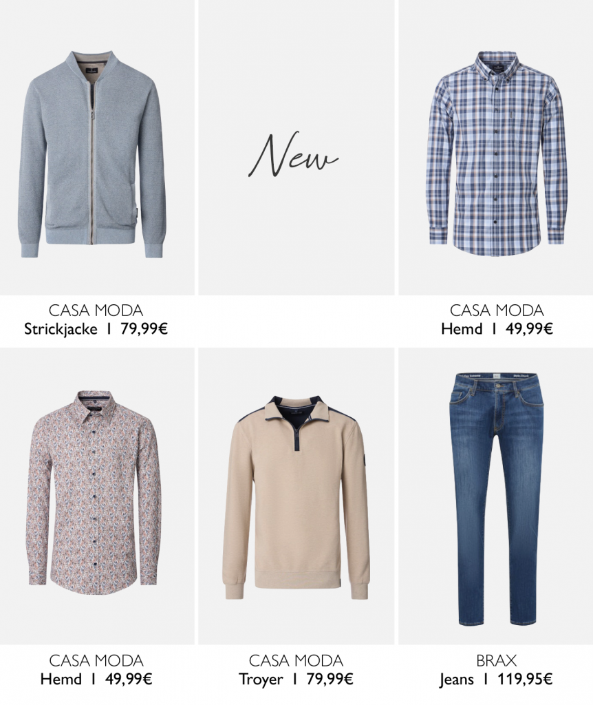 Die neuen CASA MODA Styles machen es einfach: Hemd, Jeans und Steppjacke – fertig ist ein Look, der bequem sitzt und dabei gut aussieht. Entdecke Neuheiten, die sich gut anfühlen und immer passen.