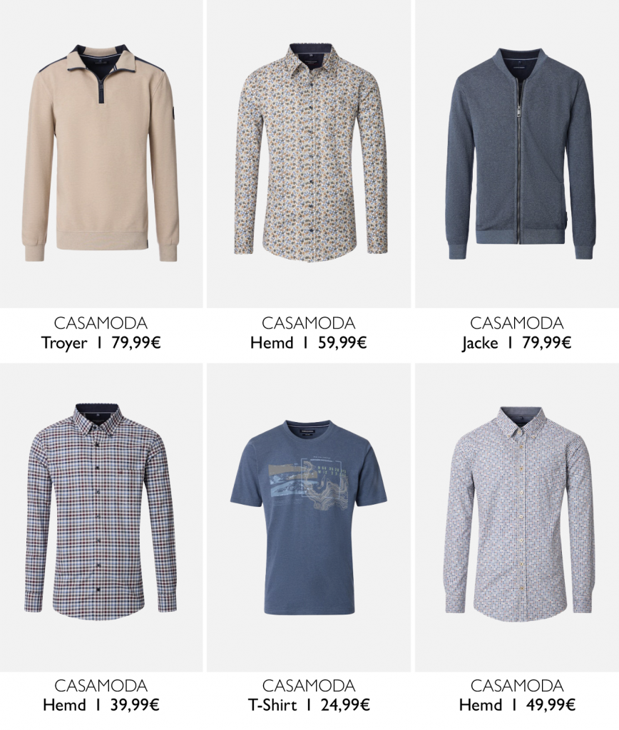 Die ersten kühleren Tage kommen – Zeit für deine neuen Herbst-Looks. Ob leichte Steppjacke, lässiges Overshirt oder das neue Lieblingshemd: Bei Casa Moda & BRAX findest du Styles, die einfach passen und dir den Übergang in die Saison leicht machen. Modern, unkompliziert und immer tragbar – so geht Herbstmode für dich.