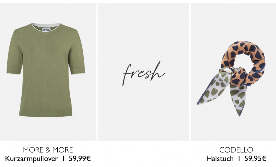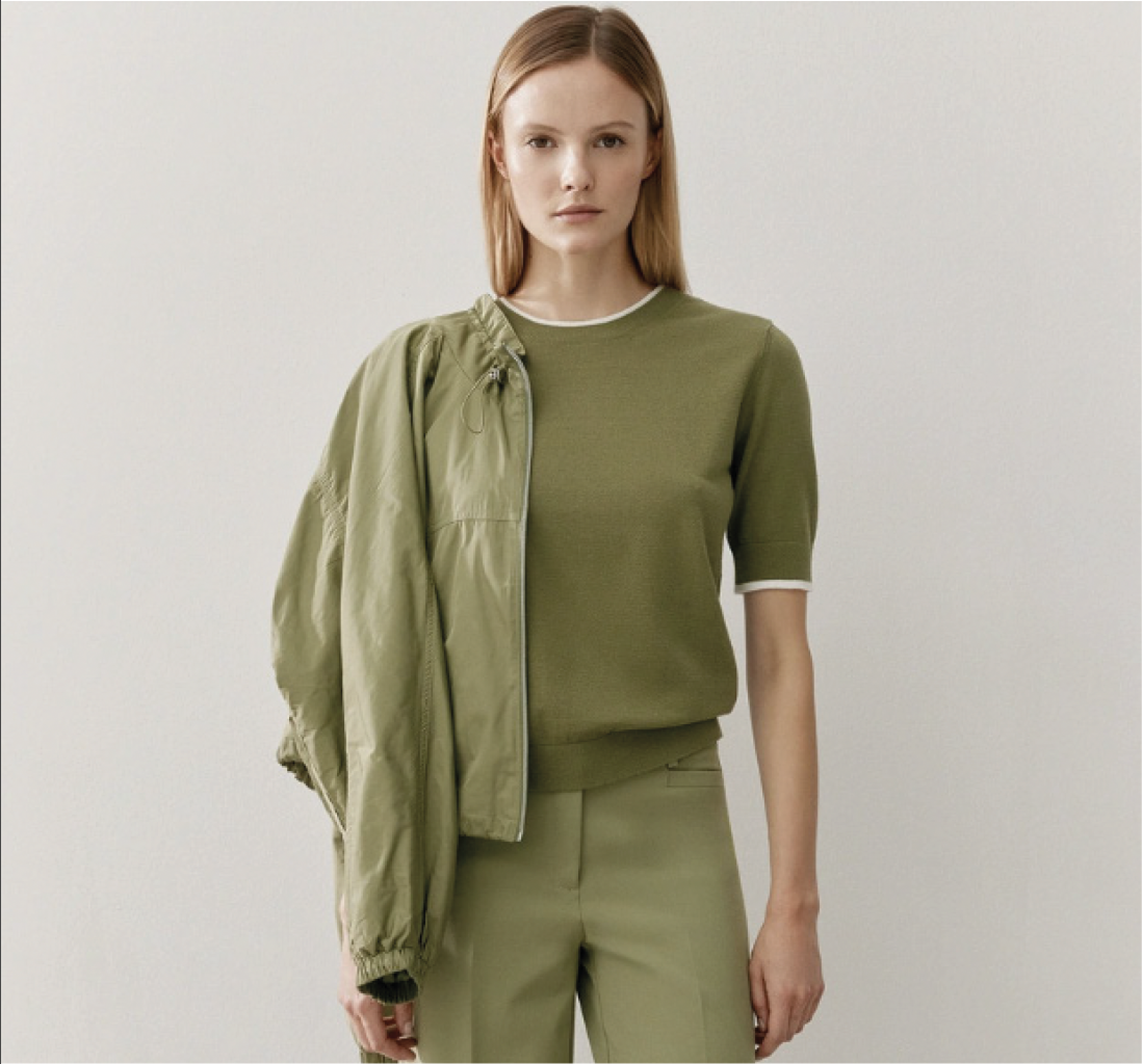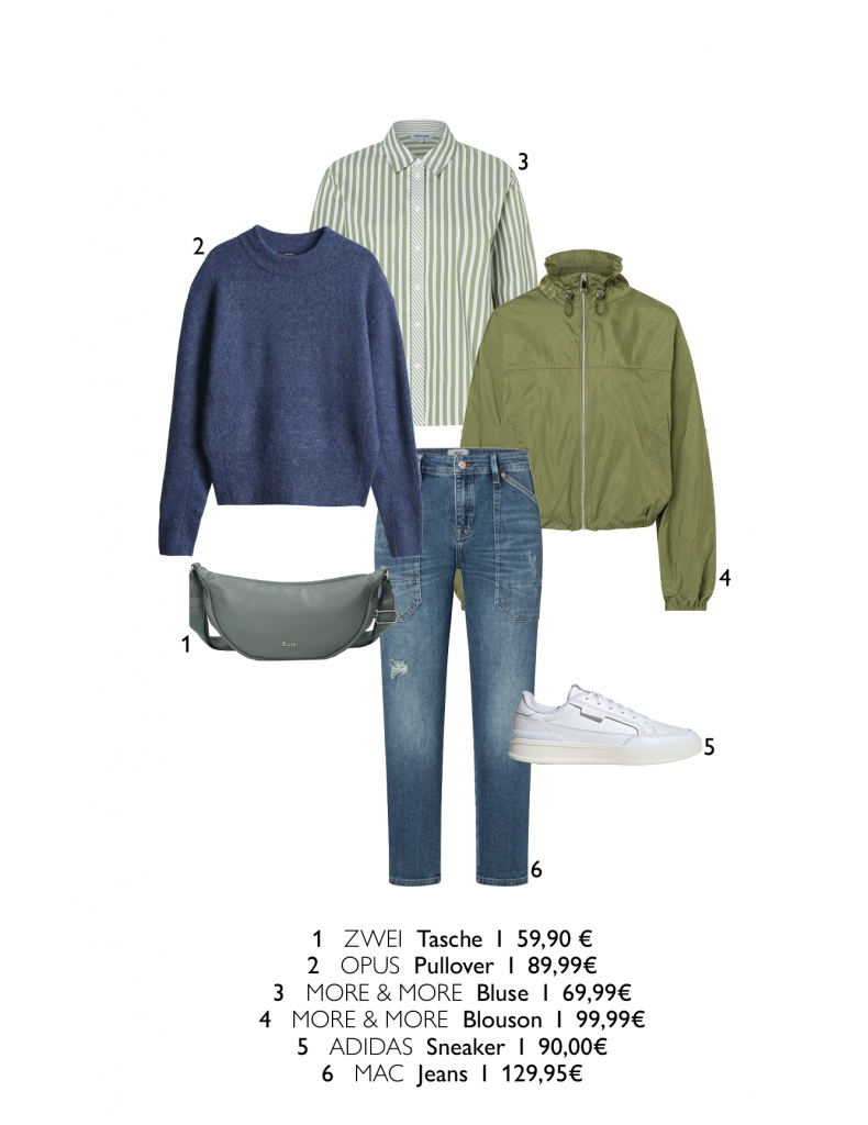 Lust auf ein frisches Update für deinen Kleiderschrank? Grün zeigt sich hier von seiner klaren, natürlichen Seite und harmoniert besonders gut mit Blau und Weiß. Die Kombination wirkt ruhig, zeitgemäß und lässt sich mühelos in deinen Alltag integrieren.