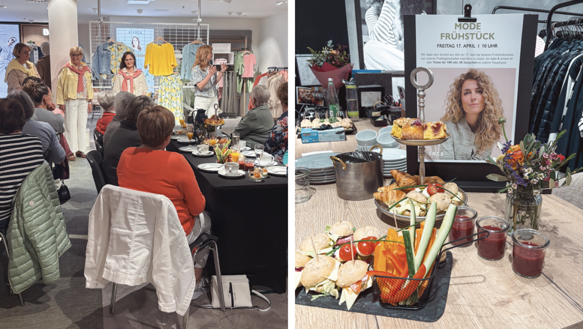 Am vergangenen Freitag wurde bei unserem Bianca-Modefrühstück nicht nur geschlemmt, sondern auch fleißig gestylt und entdeckt. Bei leckeren Frühstückssnacks, guter Stimmung und einem Gläschen zum Anstoßen konnten unsere Gäste die neuesten Frühlingslooks in entspannter Atmosphäre kennenlernen.