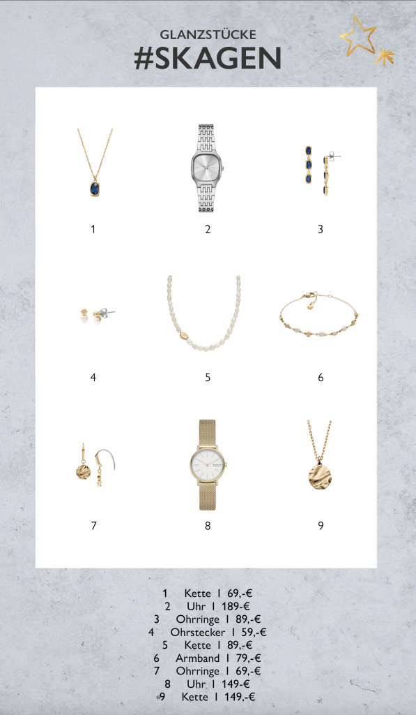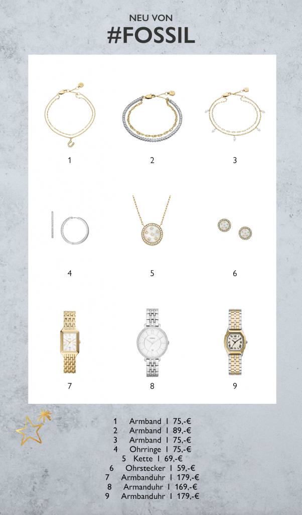 Ob für dich selbst oder als Geschenk: Die neuen Schmuckstücke von Fossil, Xenox und Skagen bringen Glanz & Glamour in deine Winterzeit. Feine Ketten, Armbänder und stilvolle Ohrringe – für Women & Men ist alles dabei, was dein Weihnachtsoutfit veredelt oder unterm Baum Freude macht.