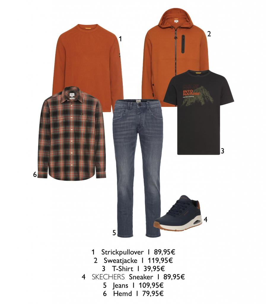 Du bist gern draußen unterwegs und magst Mode, die mit dir mitgeht? Dann sind diese Looks wie für dich gemacht. Klassische Karohemden, gesteppte Jacken, lässige Hoodies und robuste Jeans – alles in warmen Tönen wie Khaki, Orange oder Rost. Ob Stadt, Wald oder Wochenende: Diese Outfits geben dir Bewegungsfreiheit, Komfort und einen Look, der entspannt und zugleich souverän wirkt.