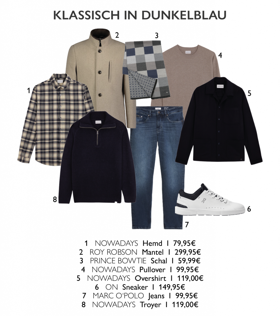 lässig-natürlichen Look, während Dunkelblau mit zeitloser Eleganz überzeugt. Entdecke die neuen Herbststyles für Ihn – modern, bequem und perfekt für die kühleren Tage.