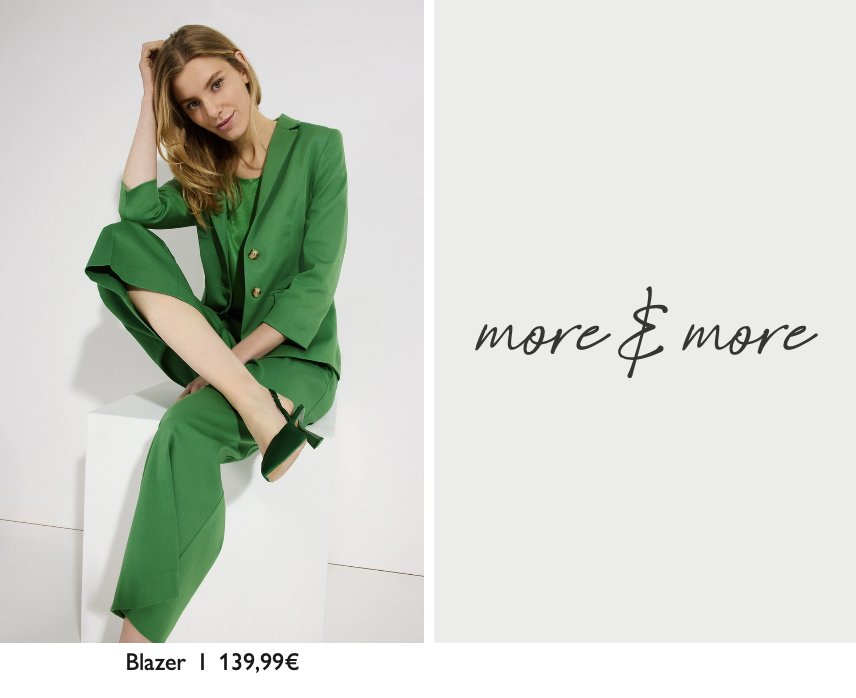 Frische Zitronenprints treffen bei More & More auf lebendiges Grün und bringen sofort Sommerlaune. Die Farben wirken natürlich, klar und strahlen pure Frische aus. Ein Look, der Lebensfreude und sommerliche Energie perfekt vereint.