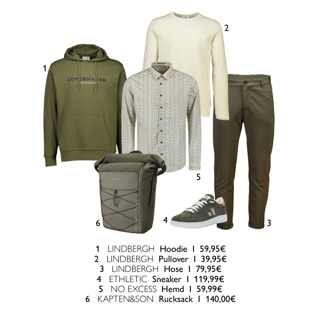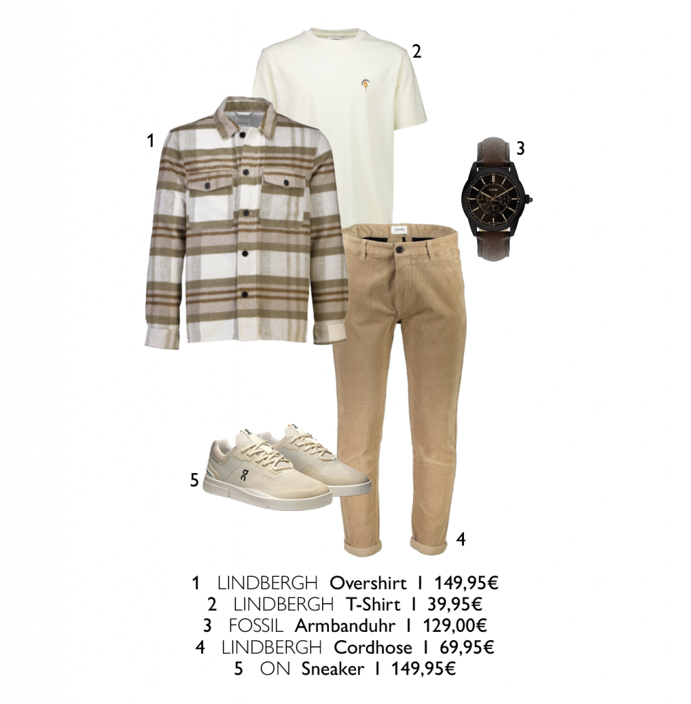 Du magst es entspannt, aber stilvoll? Dann sind diese neuen Looks wie für dich gemacht. Warme Khaki- und Beigetöne bringen Ruhe und Tiefe in deinen Look – perfekt für den Übergang. Kombiniert mit lässigen Overshirts, kernigen Cordhosen und bequemen Basics entsteht ein Style, der Alltag kann, ohne alltäglich zu sein. Genau das Richtige, wenn du Lust auf einen unkomplizierten Start in den Herbst hast.