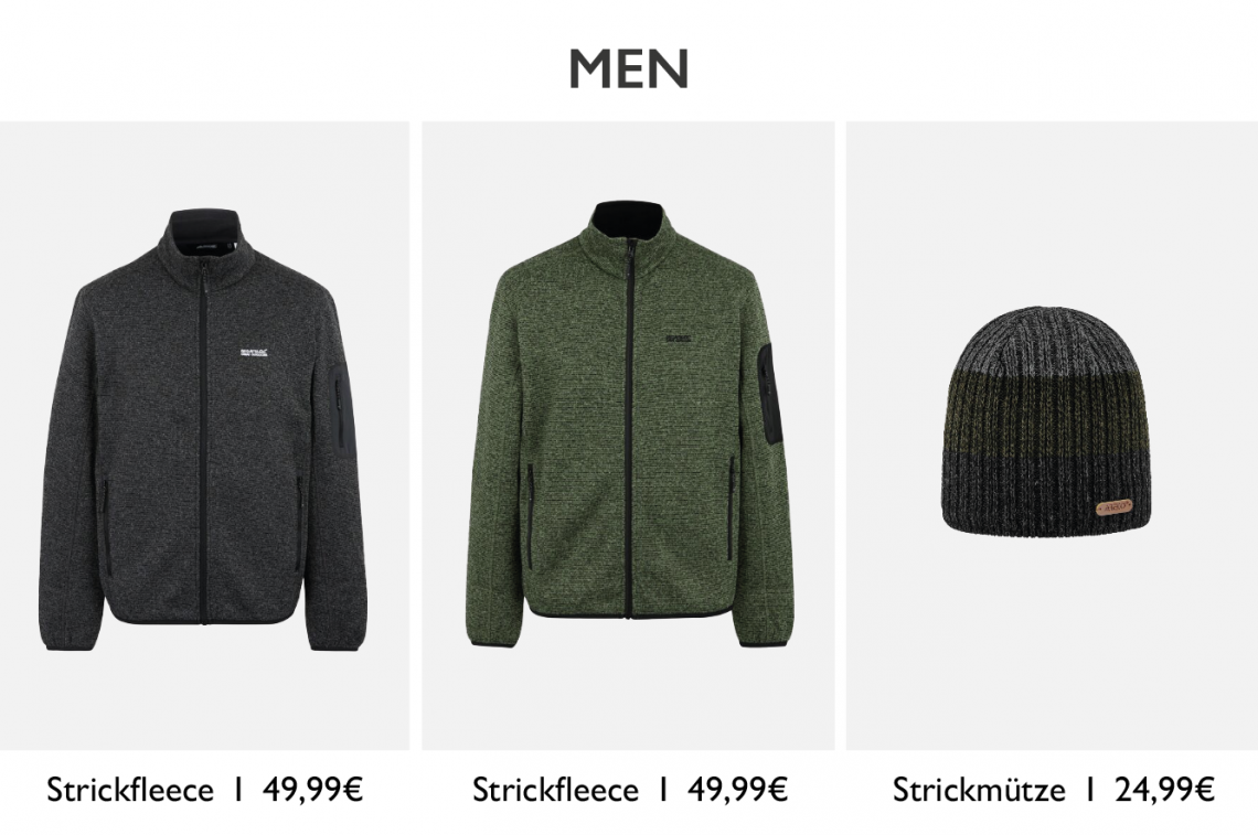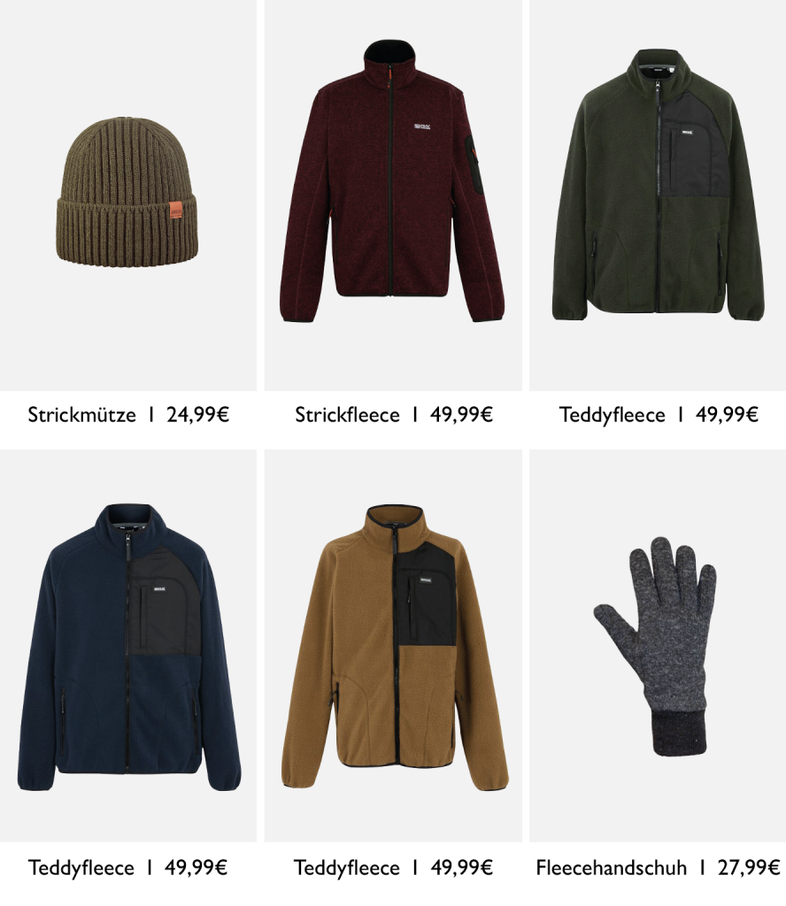Wenn’s kalt wird, greifst du zu Strickfleece – auf dem kurzen Weg nach draußen oder als extra Schicht unter deiner Jacke. Weich, warm und einfach praktisch. Passende Mützen und Handschuhe machen deinen Winterlook komplett.