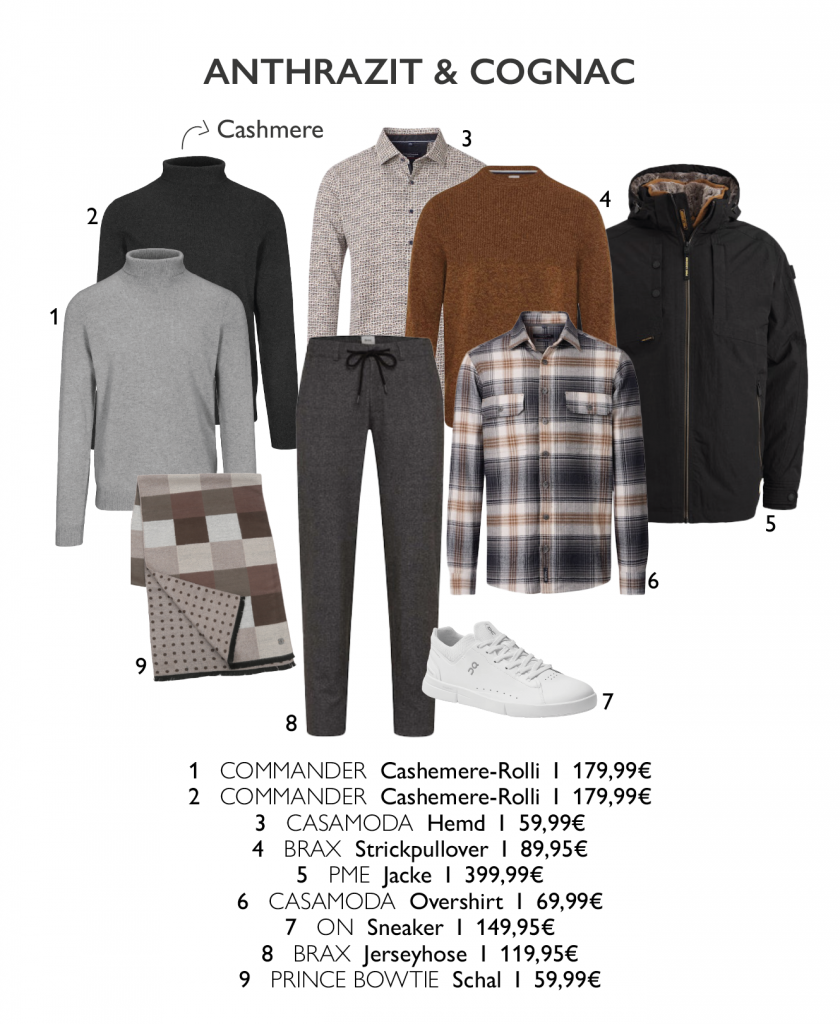 Im November geht nichts ohne Strick. Ob Cashmere, Pullover mit Muster oder Rollkragen – die neuen Styles bringen Wärme und Stil in deinen Alltag. Kombiniert mit passender Stoffhose entsteht ein Look, der immer passt – lässig, modern und einfach gut angezogen.